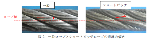 構成変更およびストランドの撚り長さを短く調整することで、ロープ同士が接触した時の素線の角度をズラすことで素線同士でむしられる現象を抑制できるショートピッチタイプのワイヤロープを客先に提案した。