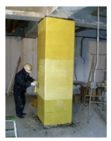 ファイベックスでは、高強度で軽量なアラミド繊維を組み込んだ「アラミドシート」を取り扱っております。樹脂を含浸させながら柱にシートを貼り付けることにより、柱を強靭に補強・補修することができます。
