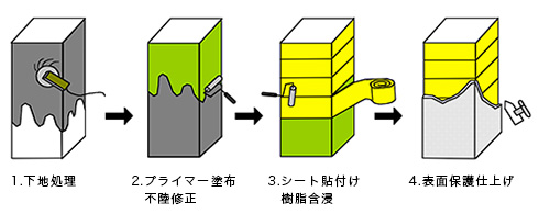 繊維シート巻立て補強工法(CFRPなど)